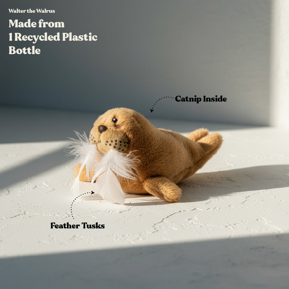 Walter the Walrus is ready to make playtime extra fun! With feather tusks and catnip, Walter will keep your cat swatting and pouncing for hours. Made from 100% recycled plastic, he's as playful as he is eco-friendly.