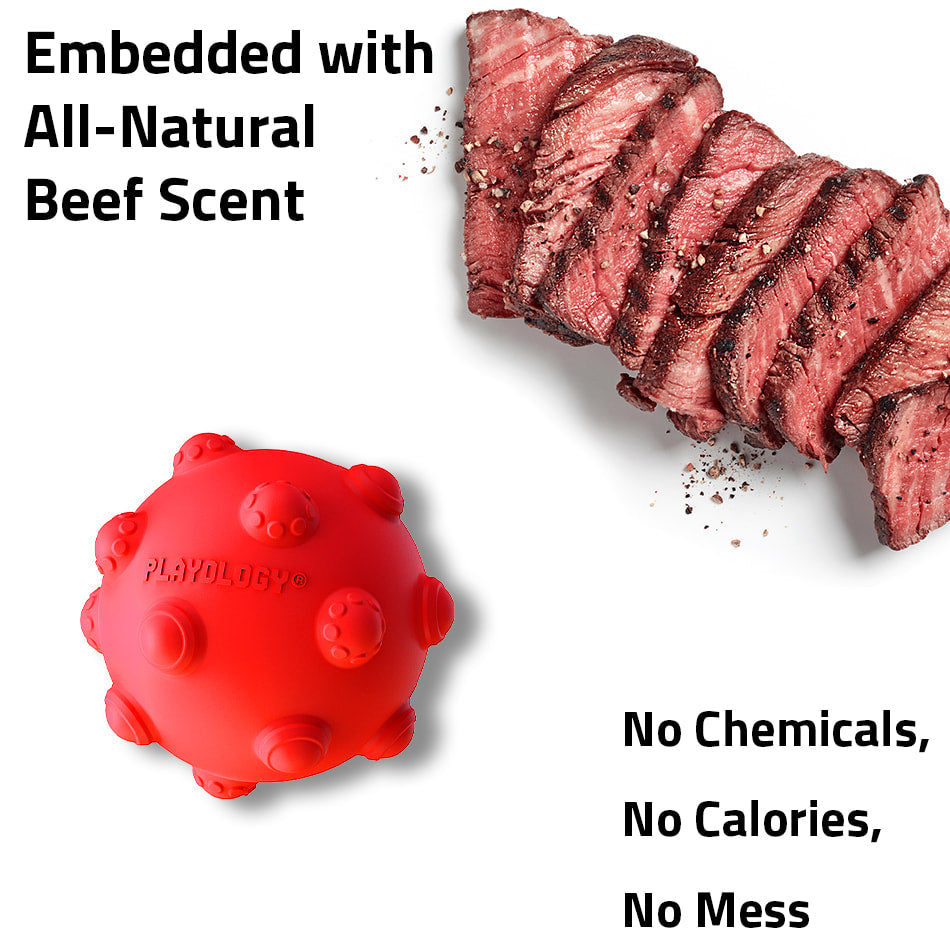 The combination of the all-natural scent, dense rubber construction and solid-cast nubs help make this toy enticing for hours of stimulating play.